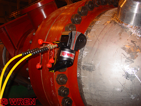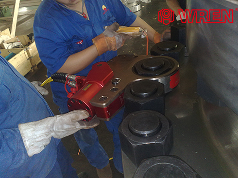 哈電集團(tuán)采用三峽工程供貨商杭州WREN的14LOW中空液壓扳手緊固轉(zhuǎn)輪與主軸安裝順利完成。