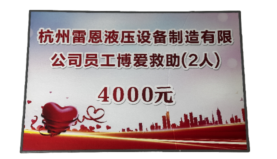 在這次意義非凡的博愛捐贈活動中,杭州雷恩液壓設(shè)備制造有限公司有兩名困難員工獲得共計4000元的博愛救助金。