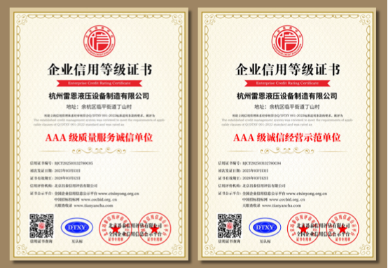 在企業(yè)發(fā)展的征程中,每一個(gè)里程碑都凝聚著無(wú)數(shù)的努力與付出。最近,杭州雷恩液壓憑借卓越的企業(yè)實(shí)力、規(guī)范的經(jīng)營(yíng)管理以及良好的社會(huì)信譽(yù),成功獲得了 3A 級(jí)企業(yè)信用等級(jí)證書!這不僅是對(duì)我們過往努力的高度認(rèn)可,更是為企業(yè)未來(lái)的發(fā)展注入了強(qiáng)大的動(dòng)力。