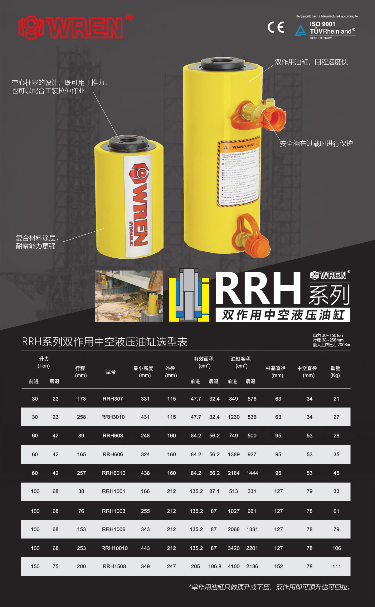 RRH系列 雙作用中空型液壓油缸選型表