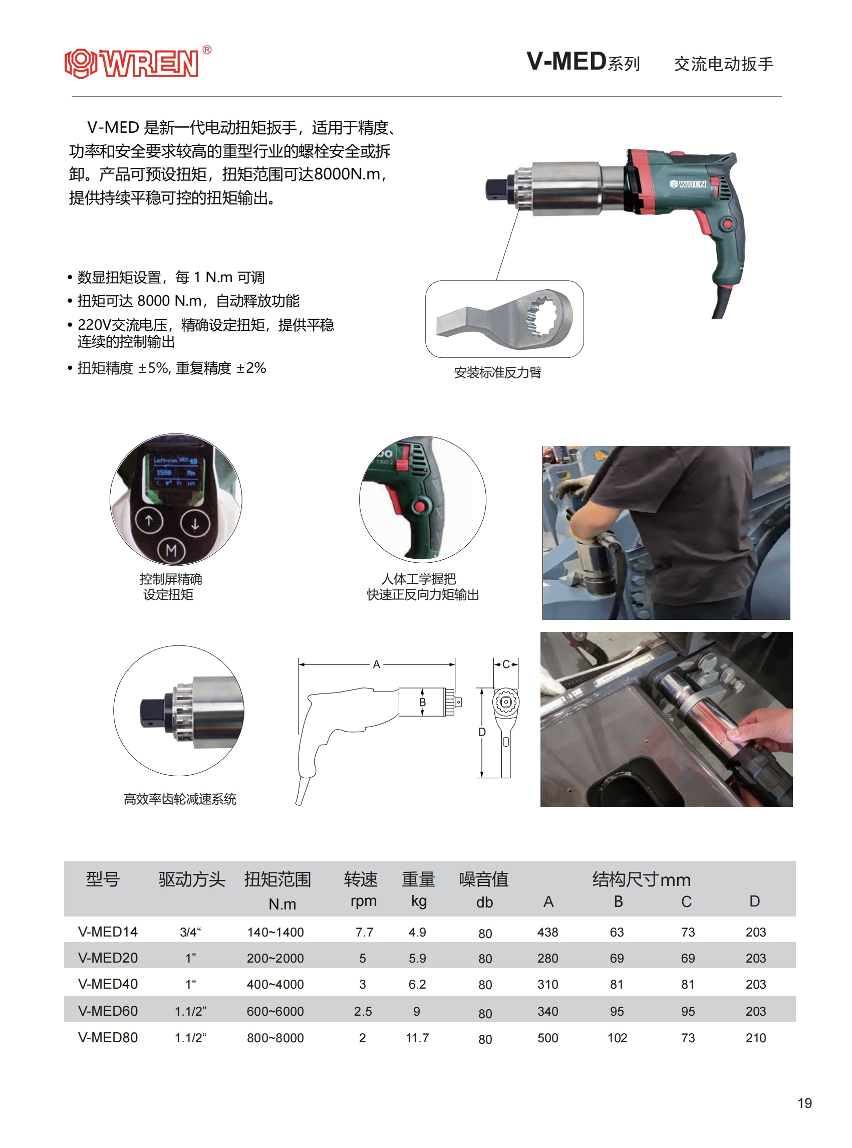 數(shù)顯扭矩設(shè)置,每 1 N.m 可調(diào) 扭矩可達(dá) 8000 N.m,自動(dòng)釋放功能 220V交流電壓,精確設(shè)定扭矩,提供平穩(wěn) 連續(xù)的控制輸出 扭矩精度 ±5%, 重復(fù)精度 ±2%